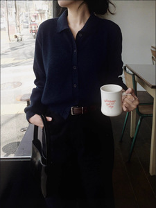 现货韩国东大门Slowand翻领纽扣开衫修身针织衫毛衣外套早秋新款