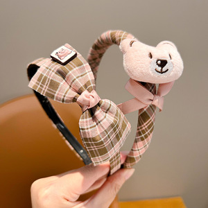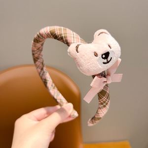 1#小熊粉咖格纹发箍【直径约11.5cm】