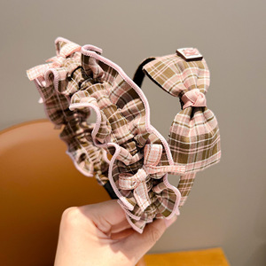儿童格子蝴蝶结发箍女童压发头箍洗脸专用不勒头小女孩发捆发卡