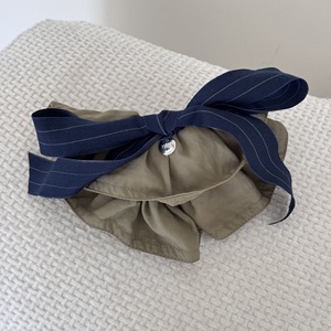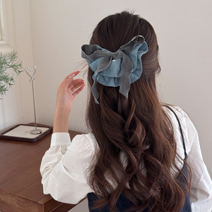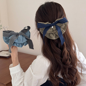 韩国高级感蓝灰条纹蝴蝶结懒人夹时尚后脑勺盘发横夹精致百搭顶夹