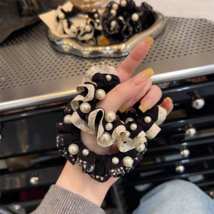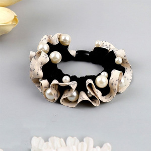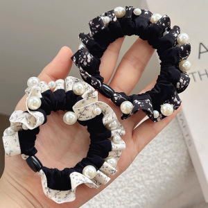 简约小碎花木耳边珍珠褶皱发圈高级感皮筋发绳简约时尚头绳发饰女