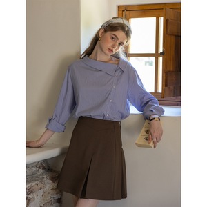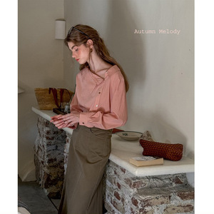 Dailyart“日落回信”工艺洗天丝锦暗格纹翻领斜门襟长袖衬衫上衣