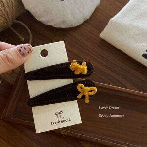 橘色小狗橘色蝴蝶结 深咖色水滴BB发夹套装