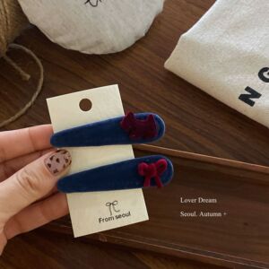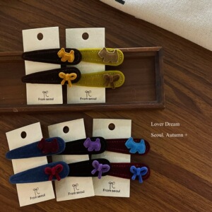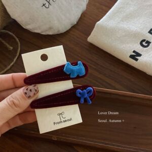 酒红色小狗红色蝴蝶结 藏青色水滴BB发夹套装