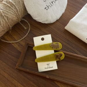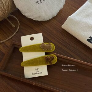卡其色小狗卡其色蝴蝶结 姜黄色水滴BB发夹套装