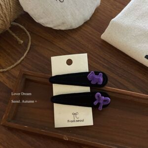 紫色小狗紫色蝴蝶结 黑色水滴BB发夹套装