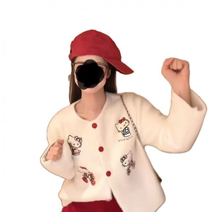 2025新款圆领新款卡通刺绣针织开衫宽松秋季慵懒休闲外套毛衣上衣