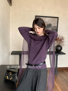 秀熙熙2025秋季白标气质圆领飘带打底衫长袖针织衫毛衣上衣25375
