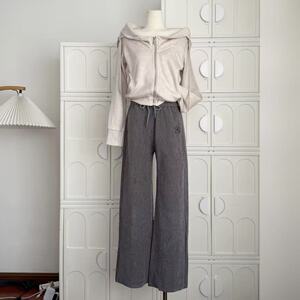 GYOKU 380g高克重燕麦色连帽卫衣外套+深灰色雪尼尔刺绣直筒长裤
