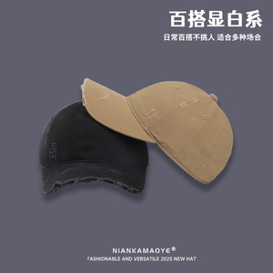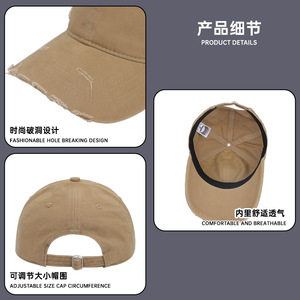 韩版做旧破洞棒球帽女秋季遮阳水洗软顶高品质显脸小休闲鸭舌帽男