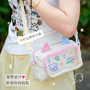 大容量ins风幸运小猫糖果撞色刺绣笔袋可斜挎设计高级小众文具袋