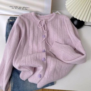 秋冬新款纯色韩系百搭宽松爱心扣毛衣女圆领长袖外套上衣针织开衫