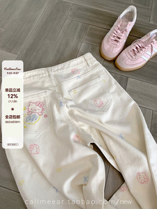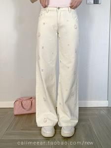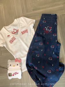 CallmeEar//【喵喵入侵计划】kitty刺绣中高腰牛仔裤女宽松阔腿裤