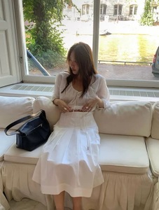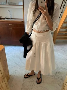 现货2025秋季新款韩国东大门tan*at纯色高腰显瘦绑带百褶裙半身裙