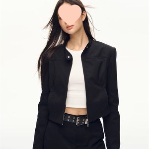 潮显瘦复古修身黑色立领辣妹风甜酷春季夹克上衣短款外套女美式