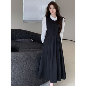 假两件套衬衫背带连衣裙女春秋新款大码胖显瘦遮肚收腰减龄长裙