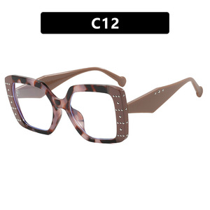 方形拼色铆钉平光镜防蓝光2025新款眼镜框高级感个性复古眼镜架女