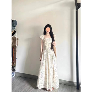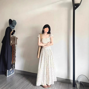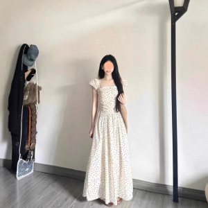 小飞袖方领波点吊带连衣裙子女夏季2025新款法式小众收腰气质长裙