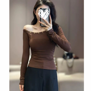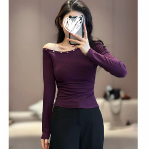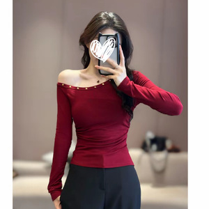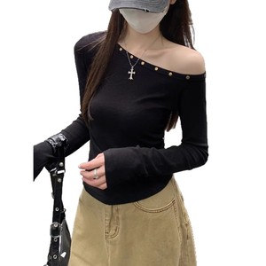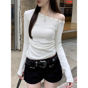 2025秋季新款个性潮流韩版气质斜肩T恤修身百搭显瘦女上衣潮
