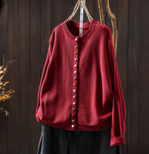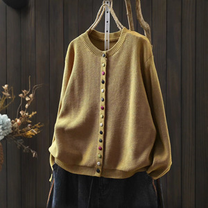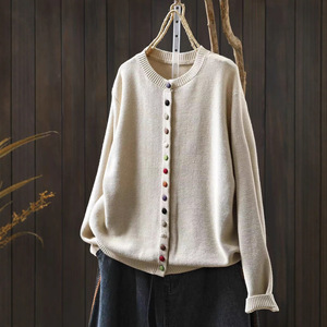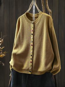 秋季新款 针织衫女士百搭文艺彩色扣休闲棉线开衫2586