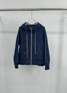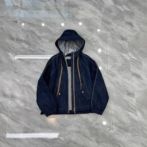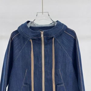 2025秋季新款简约时尚百搭连帽拉链设计宽松纯色牛仔外套批发