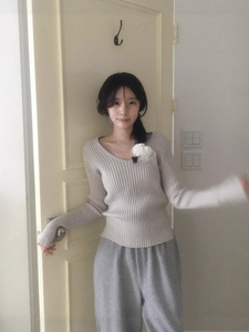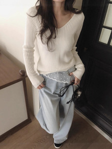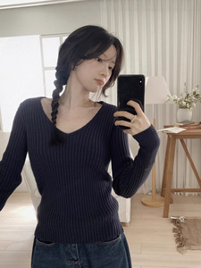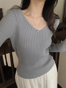 现货韩国东大门Slowand针织衫毛衣V领上衣早秋新款修身显瘦打底衫