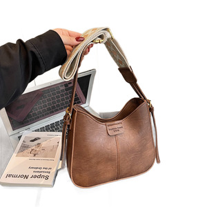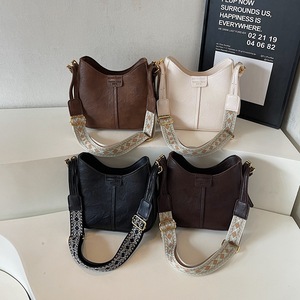 今年流行复古水桶包包女2025秋冬新款时尚宽肩带单肩包通勤斜挎包