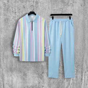 25欧美独立站跨境秋季新款大斜纹印花拼色拉链POLO衫长袖长裤套装
