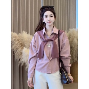 韩系设计感条纹披肩长袖衬衫女2025秋季新款气质百搭减龄显瘦上衣