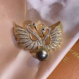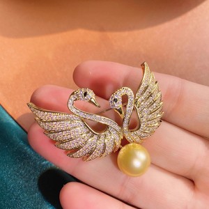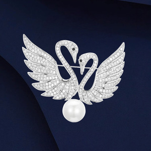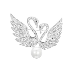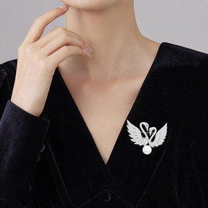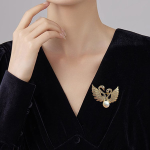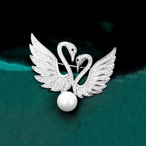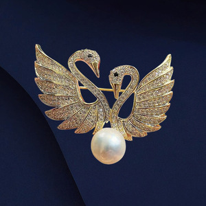 精致满钻双天鹅胸针女时尚气质珍珠胸花设计感西装别针大衣配饰品
