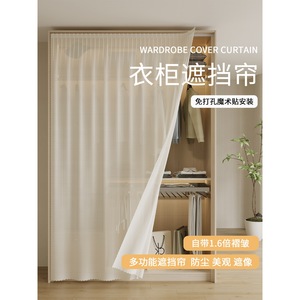 柜子遮挡帘魔术贴免打孔无门衣柜遮丑帘子杂物间防尘书柜厨房门帘