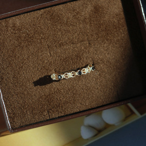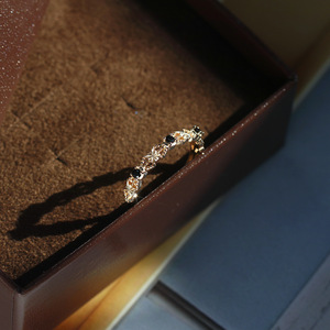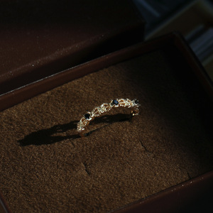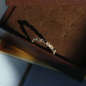 凰谨 日系阿卡朵复古黑尖晶蝴蝶结批花锆石戒指 925纯银镀金戒子