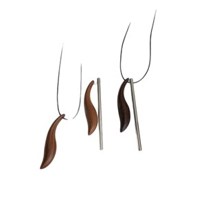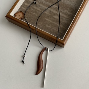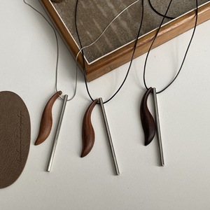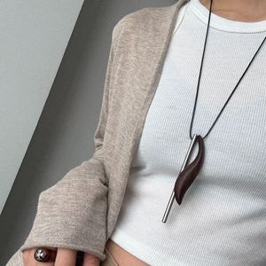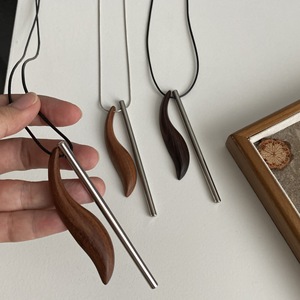 欧美设计不规则黑檀木月牙哨子吊坠项链女钛钢秋冬新款长毛衣链