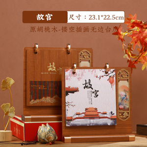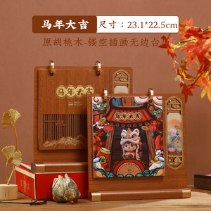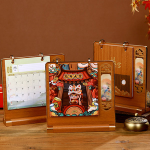 2026新款台历商务马年中国风文创记事本日历滴胶插画原木定制logo