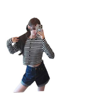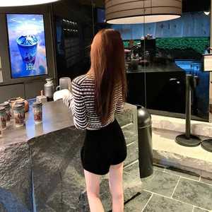 黑白撞色条纹长袖针织开衫外套女2025早秋新款辣妹修身短款上衣潮