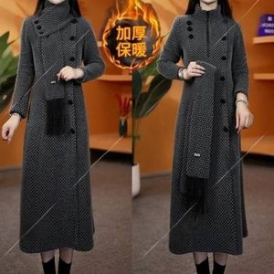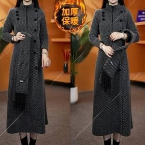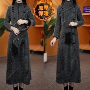 2025秋冬新款加厚显瘦时尚遮肉气质旗袍中长款围巾裙子连衣裙