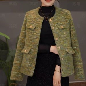 一件代发直播爆款2025秋季新款时尚圆领小香风女装小西装外套上衣