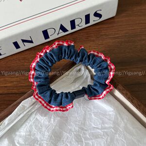 时尚格子新款花边清新简约马尾小肠发圈高弹力皮筋发绳头绳发饰