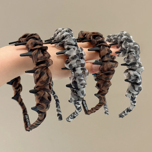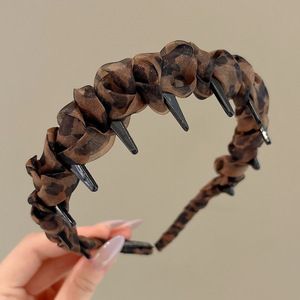复古豹纹齿梳发箍女新款网纱高颅顶显脸小头箍遮发缝碎发整理发卡