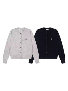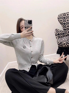 南油2025秋季新款小狐狸标圆领针织开衫修身纽扣休闲毛衣女上衣
