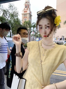 鱼兔子的兔子小香风黄色连衣裙女2025夏季新款高端精致气质短裙子