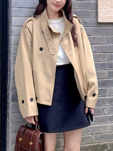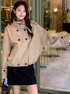 卡其色短款风衣外套女春秋季新款高级感百搭小个子休闲夹克上衣女