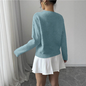 欧美跨境外贸亚马逊春夏新款显瘦纯色印花女士针织气质女提花毛衣