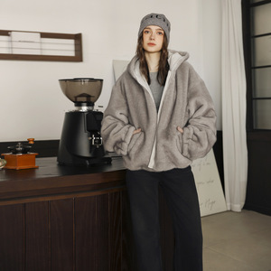 外贸欧洲站2025冬季新款洋气两面穿连帽简约韩版棉衣棉服女士外套