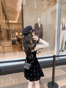 鱼兔子的兔子 法式丝绒吊带连衣裙女新款高级感内搭黑色打底裙子