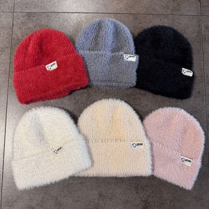 亲肤柔软仿貂毛针织帽子女秋冬天日系网红ins温暖保暖贴布毛线帽
