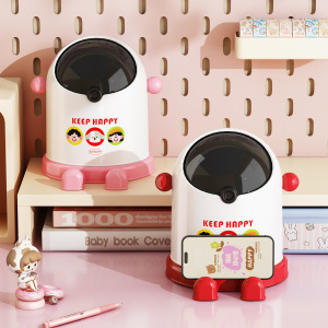 多巴胺桌面垃圾桶翻盖防臭学生宿舍多功能手机支架懒人追剧神器