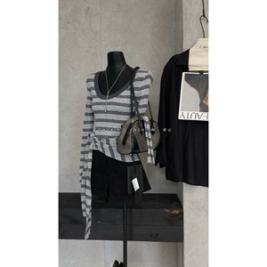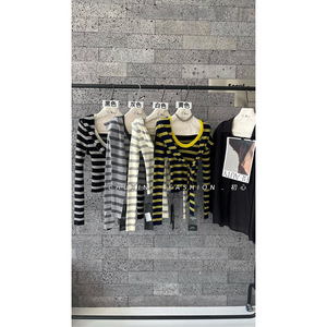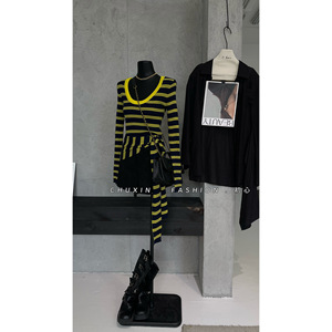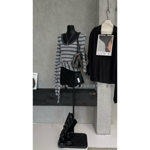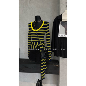 C.X初心-季韩系撞色条纹针织衫披肩两件套针织衫(配披肩)CX1078