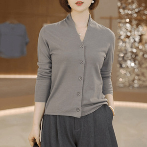 2025年新款简约修身气质百搭针织开衫纽扣设计秋季V领长袖女上衣