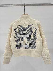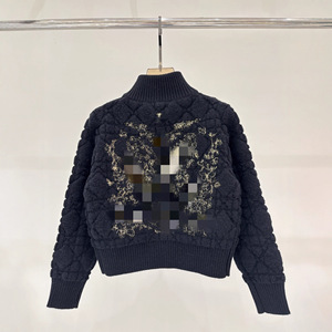 D家高版本25早秋新款格纹蝴蝶刺绣拉链长袖立领款针织开衫外套